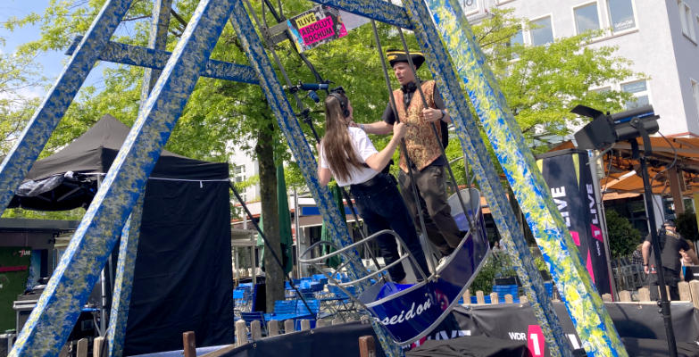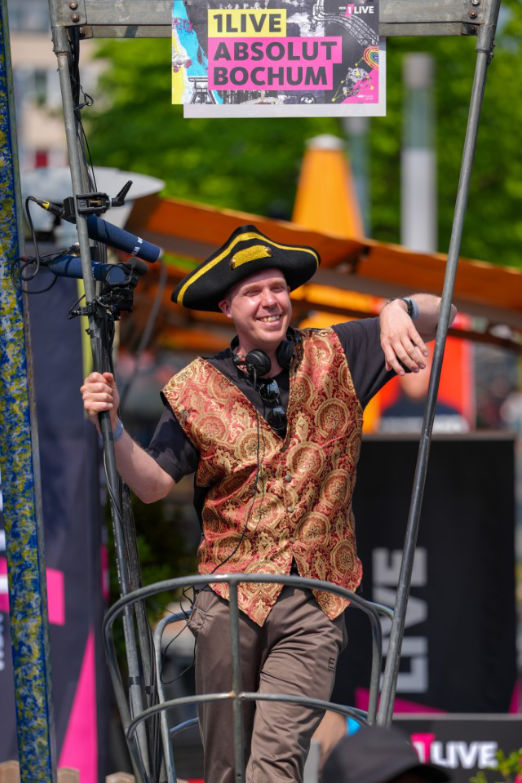 Auf großer Fahrt mit »Captain Danger«: 1LIVE-Moderator und Reporter Daniel Danger wollte erneut einen Weltrekord erzielen. Zu diesem Zweck ließ er am 10./11. Mai 2024 im Bermuda3eck in Bochum (D) eine Schiffschaukel installieren. Dangers Rekordaufgabe: Innerhalb von 24 Stunden musste er mit mindestens 250 unterschiedlichen Personen je eine Schiffschaukel-Fahrt unternehmen.