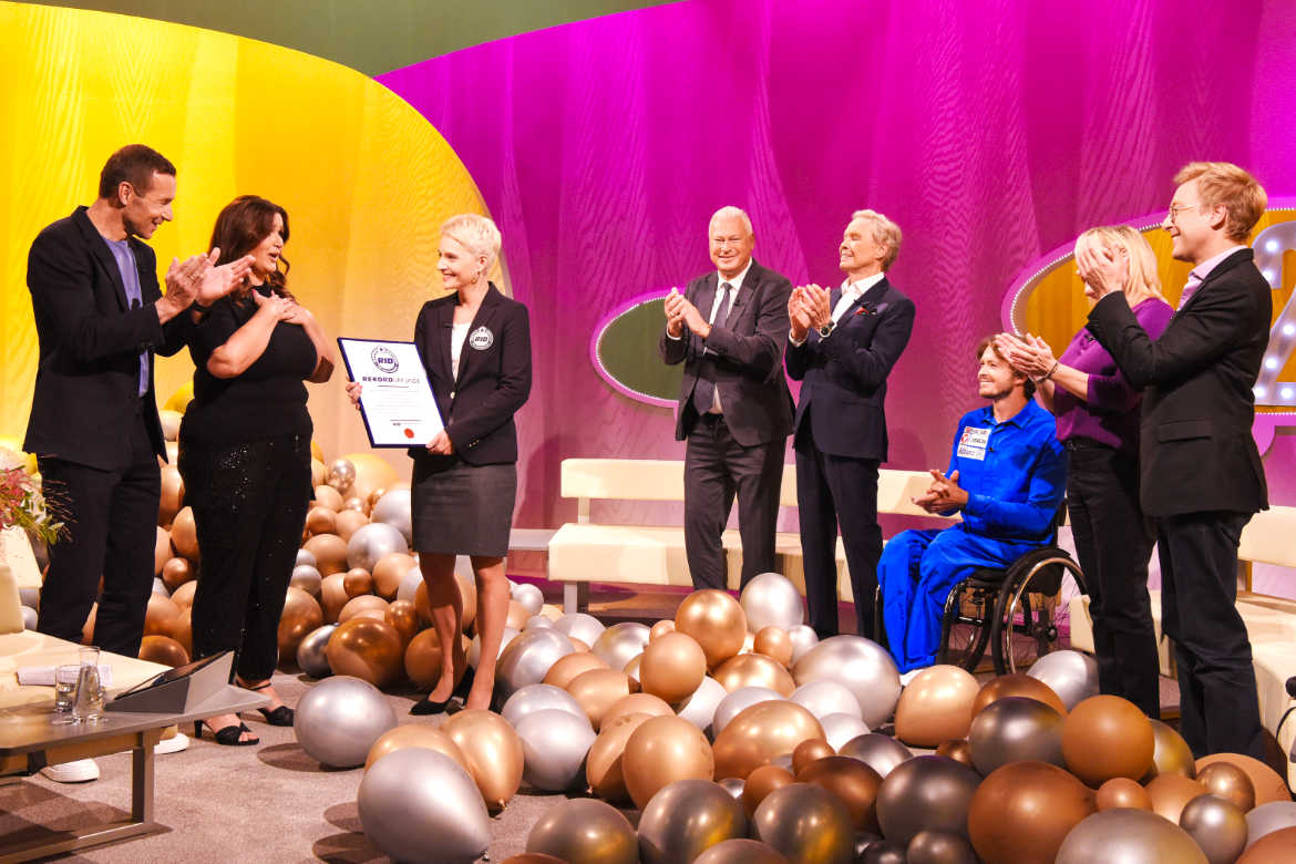 RID-Rekordrichterin Ricarda Pastuszek war nach Wien gereist, um den Talkshow-Rekord im Fernsehstudio offiziell zu zertifizieren und Barbara Karlich mit einer eigenen Rekordurkunde auszuzeichnen. Perfekt anmoderiert von Kai Pflaume überreichte Pastuszek der gerührten Barbara Karlich deren ganz persönliche RID-Urkunde. Diese Überraschung war definitiv gelungen und bleibt sicherlich in guter Erinnerung.Fotos: ORF