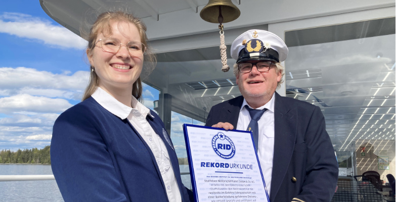 Unter Jubel der wartenden Besucher fuhr das Schiff zum letzten Mal an diesem Tag an die Anlegestelle. Als die Staffelseerin ihre 18 Stunden 10 Minuten dauernde Fahrt beendete, hatte sie genau 137 Kilometer zurückgelegt. Mit dieser Strecke zertifizierte Rekordrichterin Kuchenbecker den neuen Weltrekord für die »weiteste im Elektro-Fahrgastschiff mit einer Batterieladung gefahrene Distanz«. Stellvertretend für alle Fahrerinnen und Fahrer zeichnete sie Gerry Meyer am 26. April 2024 mit der wohlverdienten RID-Rekordurkunde aus.Anschließend feierten die Initiatoren die neue Bestleistung an Bord der MS Seehausen. Dies wird sicherlich nicht der letzte Weltrekord zum Thema E-Mobilität gewesen sein, der zeigt wie ausdauernd diese Antriebsart ist.