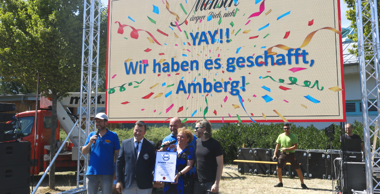Insgesamt 2.117 Personen hatten sich auf der Bleichwiese getummelt und dort gleichzeitig das wohl bekannteste Gesellschaftsspiel der Welt gespielt.Damit kehrt der RID-Weltrekord für die »meisten Personen beim ›Mensch ärgere dich nicht‹-Spielen« zurück nach Amberg. Für die Stadt war dieser Tag also keiner zum Ärgern. Vielmehr wurde der zurückeroberte Weltrekord von den Teilnehmenden unter großem Jubel gebührend gefeiert