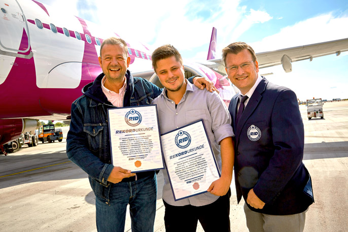 Für eine Anerkennung der Aktion als Weltrekord der Kategorie »schnellste Sightseeing-Weltreise über 4 Kontinente mit Billigairlines«, hatte das Rekord-Institut für Deutschland eine Zeit von maximal 125 Stunden vorgegeben für die Zeitspanne vom Abheben mit dem ersten Flug, bis zum Kontakt der Räder auf der Landebahn beim letzten Flug.