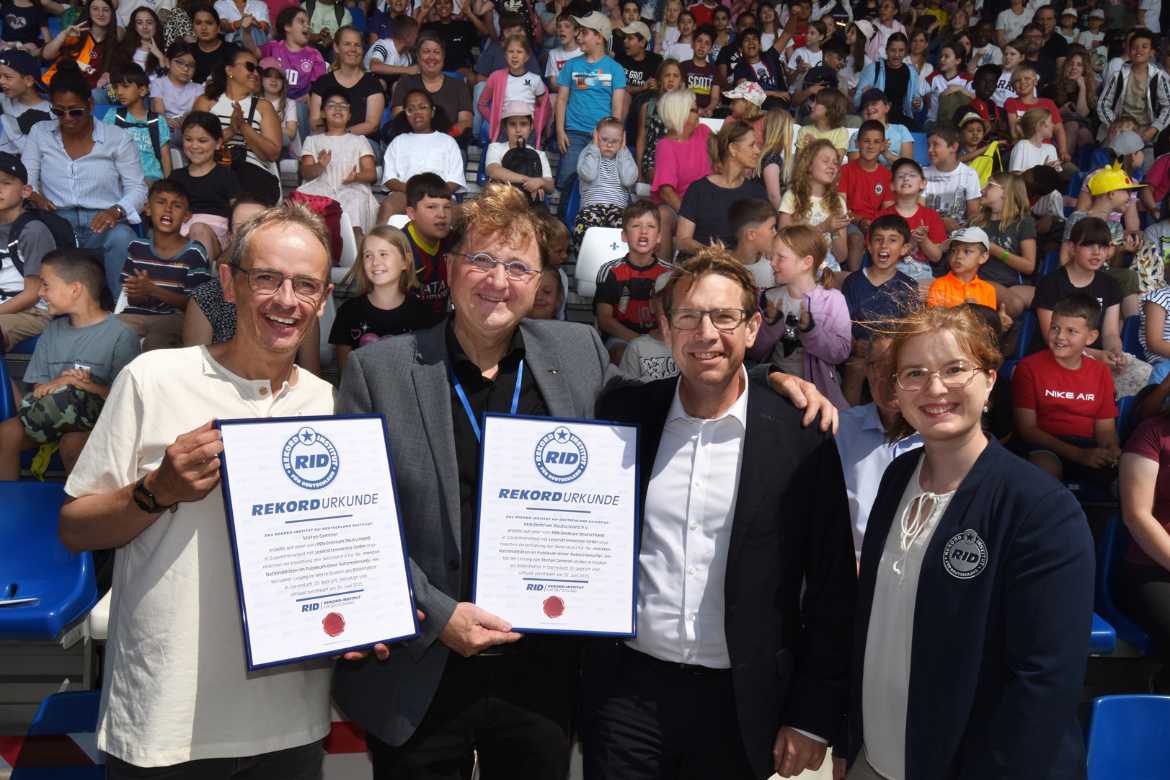 Endlich: Nach fast eineinhalb Stunden Autorenlesung konnte Kuchenbecker das Ergebnis verkünden. Kinder und Lehrkräfte mit exakt 74 Nationalitäten besuchten die Lesung. Mit dieser Anzahl zertifizierte die Rekordrichterin den neuen Weltrekord für die »meisten Nationalitäten im Publikum einer Autorenlesung«. Feierlich zeichnete sie Michael Landgraf, Generalsekretär des PEN Deutschland, sowie Stefan Gemmel mit der RID-Urkunde aus. Ebenfalls vor Ort war Hanno Benz, Oberbürgermeister der Stadt Darmstadt, der den Anwesenden persönlich gratulierte.Mit diesem Weltrekord zeigt PEN Deutschland, dass Lesen verbindet – über Sprachen und Kulturen hinweg. Das RID gratuliert Stefan Gemmel, dem PEN-Zentrum Deutschland e.V. sowie allen teilnehmenden Schulklassen samt Lehrkräften im Publikum herzlich zu diesem außergewöhnlichen Weltrekord.