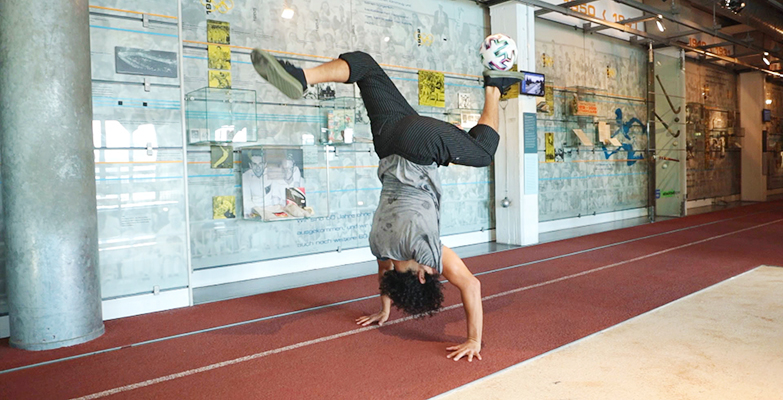 In Sachen Weltrekorde ist Jamal kein unbeschriebenes Blatt, denn bereits im April 2020 stellte der Düsseldorfer bei der Aktion »RID-Rekorde brechen für Zuhause« sein Können unter Beweis und einen Weltrekord auf. Seinerzeit gelangen dem Fußball-Freestyler 444 aufeinanderfolgende Berührungen, um bei den »meisten Fußball-Ballberührungen beim Hängen am Reck« den Weltrekord zu knacken. Auch beim aktuellen Rekordversuch ging es um das richtige Ballgefühl, denn der Rekordjäger hatte sich vorgenommen, die »meisten mit den Beinen aufgefangenen Fußballwürfe in einer Minute« zu erzielen. Dafür musste Jamal mindestens 15 Fußballwürfe mit den Beinen fangen – während er im Handstand das Gleichgewicht hält.