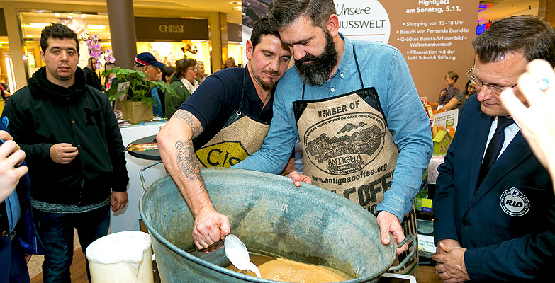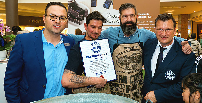 Als weiteres Highlight unternahmen Erik Brockholz, Röstmeister der Kaffeerösterei Burg in Hamburg und Sergio Frau, Barista des Unternehmens, einen thematisch passenden Weltrekordversuch. In einer ovalen 70 cm x 58 cm großen Zinkbadewanne gestalteten die beiden das »weltgrößte Kaffee-Milchschaumbild«. Also das Verzieren des Kaffees durch besonders kunstvolles Einschenken der geschäumten Milch.