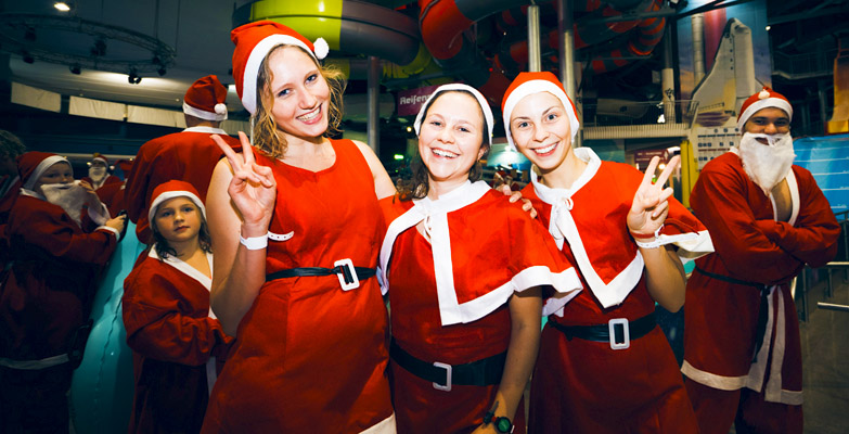 Bei der Neuauflage des Nikolaus-Rutschen hatte die Therme Erding für kurzentschlossene Rekordjäger sogar Kostüme bereitgestellt, bestehend aus roter Hose, Mantel, Gürtel, Mütze und – falschem Bart. Für die Damen gab es ebenfalls ein regelgerechtes Kostüm, in diesem Fall bestehend aus rotem Weihnachtskleid, Cape, Gürtel und ebenfalls einer typischen roten Mütze mit weißem Kunstpelzbesatz.