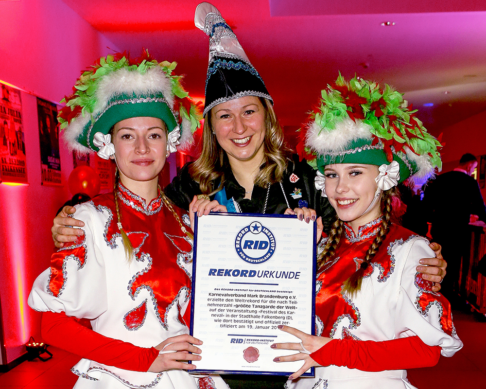 Der »Karnevalverband Mark Brandenburg« sorgte am 19. Januar 2019 als Gastgeber des »Festivals des Karneval« in der Stadthalle Falkensee (D) für einen sehr bunten Abend der 30 im Verband organisierten Karnevalsvereine. Krönender Abschluss des Spektakels war ein Weltrekordversuch, gemeinsam getanzt von den Funkenmariechen der Vereine.