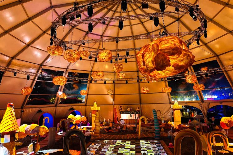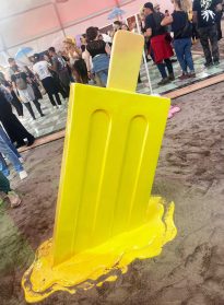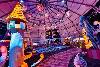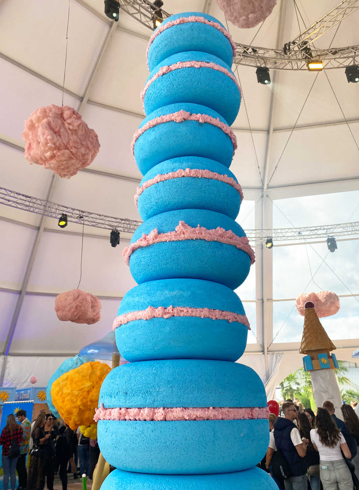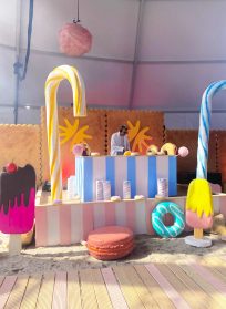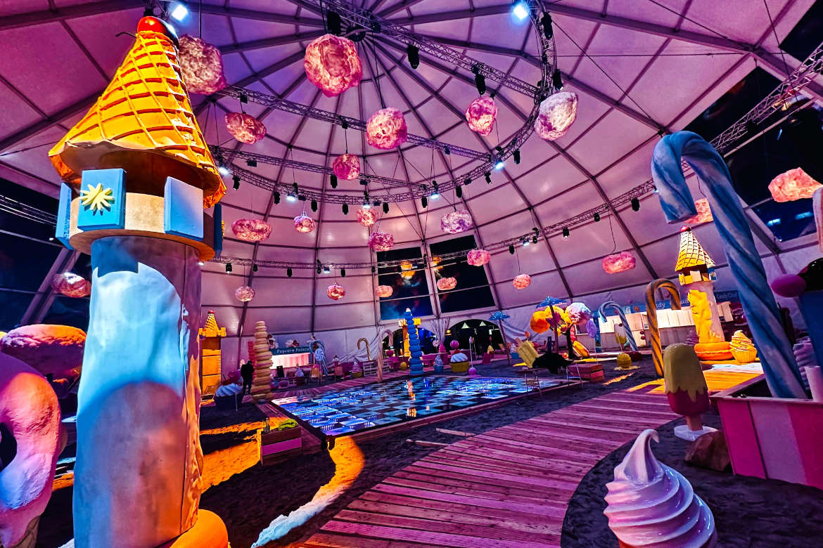 Neben bunten Skulpturen gab es auch Mitmachstationen für die Festivalgäste, wo Masken verziert und Armbänder aufgezogen wurden sowie Erinnerungsfotos geschossen werden konnten. Zudem gab es Zuckerwatte, Süßigkeiten-Tüten und Popcorn abzustauben – passend zu den übergroßen Deko-Objekten, die zum Anbeißen aussahen.
