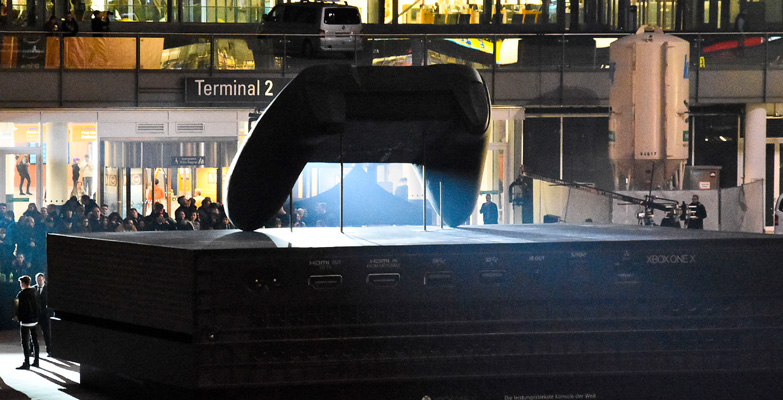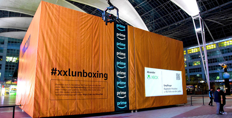 Konsequenterweise nutzte Microsoft Deutschland diesen Trend zur Markteinführung der XBOX ONE X und präsentierte im Flughafen München MAC Forum die Replik eines gigantischen Amazon-Versandkartons, der an den deutschen YouTuber Felix von der Laden alias »Dner« adressiert worden war, der sich mit Unboxing-Videos zu Computerspielen einen Namen gemacht hatte.