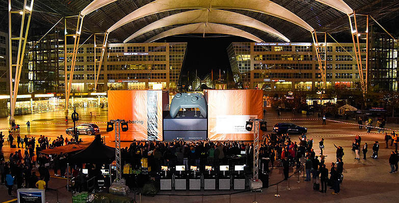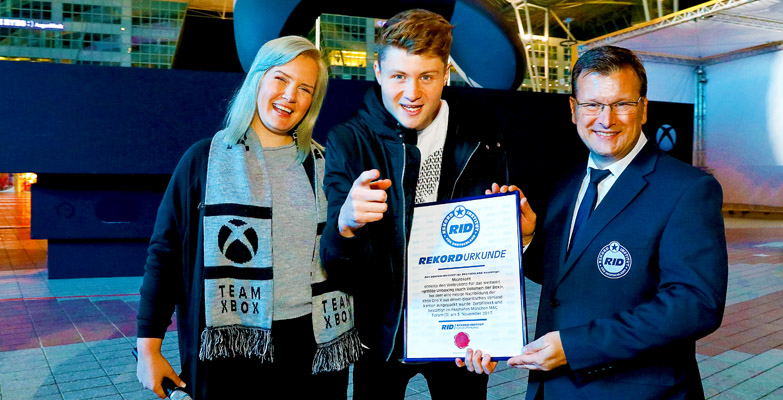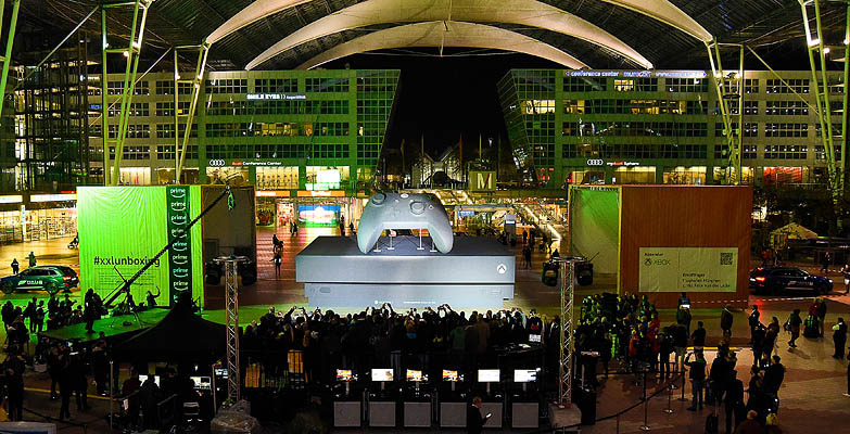 Und Felix von der Laden war am 3. November 2017 nach München gekommen, sein Paket abzuholen. Er selbst gab dort das Kommando, mit dem der 14 m lange, 11,4 m breite und 6,5 m hohe »Karton« durch zwei Geländefahrzeuge auseinandergezogen wurde, und den Blick freigab auf die entsprechend überdimensionierte Nachbildung einer XBOX ONE X. Während das Team von Microsoft Deutschland den Weltrekord für das mit 1.037,40 m³ weltweit »größte Unboxing (nach Volumen der Box)« feierte, gab es für die geladenen Gäste die Möglichkeit, die Fähigkeiten der neuen Konsole auszuprobieren.