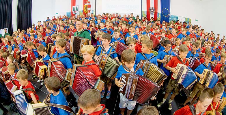 Der Ton macht die Musik — auch beim Rekordversuch für das »größte Diatonische Harmonika-Ensemble« in Altenmarkt im Pongau (A), wo Schüler der »Musikum«-Musikschulen am 16. Juni 2019 zu einem Charity-Event zusammenkamen, und sich unter tosendem Applaus der rund 400 Zuschauer den Erstrekord der Kategorie sicherten.
