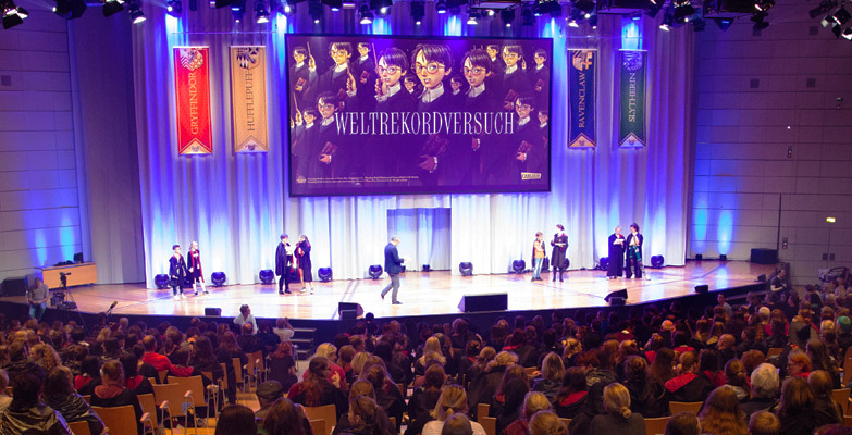 Nach einem Quiz und der Präsentation des Mailänder Illustrators Iacopo Bruno, der die Bände der neuen Harry-Potter-Ausgabe aufwändig und liebevoll gestaltet hat, war es für RID-Rekordrichter Olaf Kuchenbecker an der Zeit, das Ergebnis der Weltrekordzählung zu verkünden. Auch wenn die Kostüme allen Regeln entsprachen, gab die Zahl der versammelten »Harry Potters« Grund zur Beanstandung: