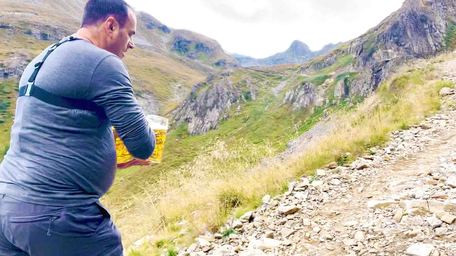 Nachdem die Bierkrüge bis zum Eichstrich gefüllt sind, geht es los für Strümpfel. Würde sich das Training auszahlen, das im Fitnessstudio aus Kraft- und Ausdauerübungen bestanden hatte? Die gefüllten Krüge in der Hand, marschiert der Bierträger los und vorbei an der 50-Meter Marke. Doch schon bald hört man sein schweres Atmen, die dünne Bergluft und die mehr als 16 Kilogramm schweren, vollen Krüge sind zusammen mit dem unebenen Untergrund nicht mit einem Fitnessstudio zu vergleichen. Erreicht der Rekordhalter das Ziel und schafft damit einen weiteren Weltrekord?