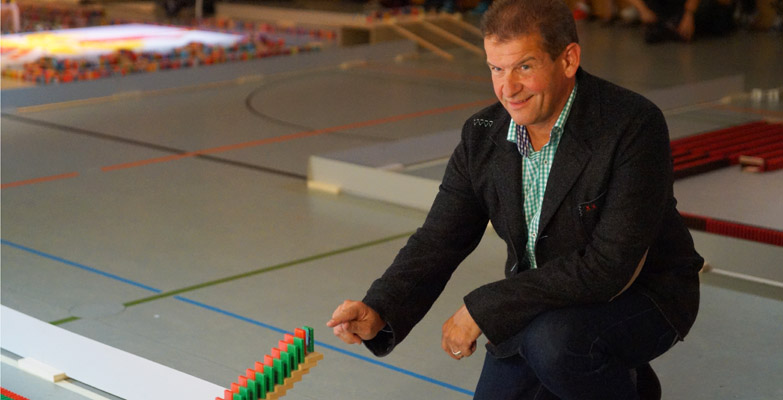 Mit Unterstützung von Notar Kurt Weckesser und einer hochpräzisen Waage hatte RID-Rekordrichter Olaf Kuchenbecker alle Hände voll zu tun, die Rekordzahlen der final umgeworfenen Dominosteine zu ermitteln. Und trotz der vorab fehlenden Steine hat es gereicht für den deutschen Rekord in der Kategorie »meiste in Kettenreaktion umgeworfene Dominosteine«, den Kuchenbecker noch am Abend mit 472.209 Steinen in Büdingen bestätigte.