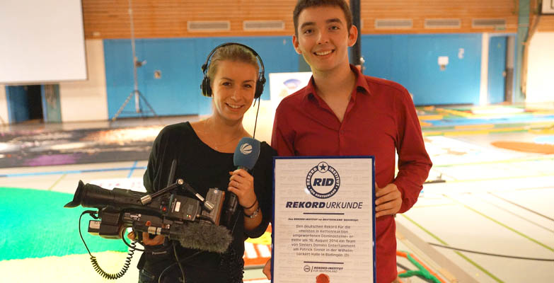Im Oberhessischen Büdingen ging es am 16. August 2014 wie im berühmten TV-Vorbild um Domino-Rekorde. In der dortigen Wilhelm-Lückert-Halle hatte ein 15-köpfiges internationales Team von Sinners Domino Entertainment um Patrick Sinner in gut zwei Wochen knapp eine halbe Mio. Dominosteine zu verschiedenen Mustern und Formen aufgebaut, um mit ihnen den deutschen Rekord für die »meisten in Kettenreaktion umgeworfenen Dominosteine« zu knacken.