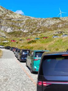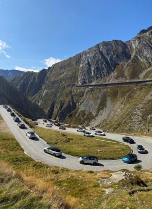 In Locarno (CH) wurde vom 9. – 13. September 2025 jedoch nicht nur geplaudert, sondern auch ein Weltrekordversuch gestartet. Nach dem spektakulären Drohnenflug durch aufgereihte Volkswagen ID.s im letzten Jahr, waren dieses Mal die Fahrkünste der Autofans im Fokus. Und so sollte der »längste E-Auto-Konvoi einer Marke auf einer Passstraße mit Serpentinen« versucht werden.