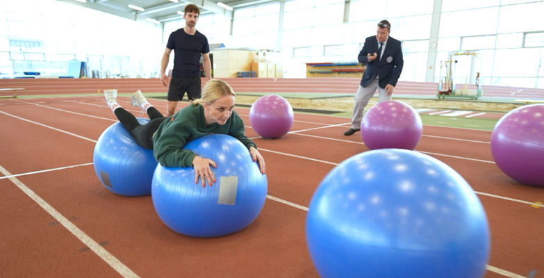 Angetan hatte es Janin das sogenannte »Gymnastikball-Surfen«. Eine Disziplin, bei der man eine bestimmte Distanz möglichst schnell zurücklegt, indem man sich auf Gymnastikbällen auf dem Bauch liegend mit den Händen von Ball zu Ball voranzieht. Sobald der Körper den Boden berührt, ist der Rekordversuch gescheitert. Daher ist es essentiell, den Körper mit der Rumpfmuskulatur zu stabilisieren, um die Bälle absolut gerade queren zu können. Beherzigt man dies nicht, verliert man die Richtung und fällt unweigerlich seitlich vom Ball. Eine Erfahrung, die Janin beim Training häufig machen musste.