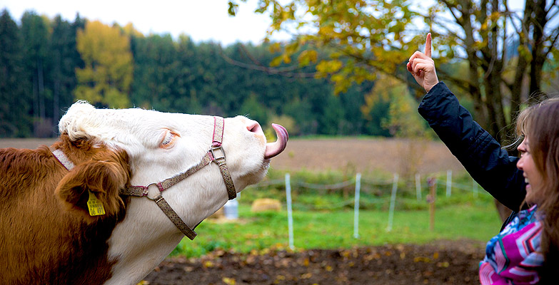 Seit acht Jahren ist Annika Müller aus Großgründling (D) in Oberbayern stolze Kuh-Halterin. Neben Kuh-Dame Mucki wohnt auch deren Sohn, Ochse Urmel auf dem Hof. Die Kuh wird allerdings nicht zur Milchproduktion gehalten, sondern als Reittier genutzt und mit Verhaltenstraining bei Laune gehalten. Das wichtigste für die 22-jährige Annika ist dabei, dass das Tier Spaß hat. Nach monatelangem Training mit einem Mix aus Liebe und Leckerlis brachte die Kuh-Trainerin ihrem Tier bei, Personen zu »küssen« indem die Wange abgeschleckt wird. Dieses Talent sollte Mucki in einem tierischen Weltrekordversuch unter Beweis stellen und im Fernsehen so viele Küsse wie möglich in einer Minute verteilen. Für den Erstrekord mussten in dieser Minute mindestens 12 feuchte Küsse auf die Wangen der Testpersonen aufgebracht werden.