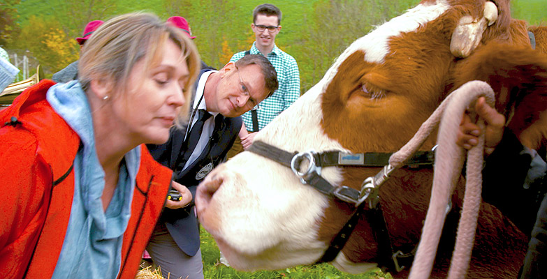 Das ganze Dorf samt Bürgermeister Gerhard Betz stand am Drehtag, dem 3. November 2018, bereit, um sich von Mucki abknutschen zu lassen. Doch mit Start des Rekordversuches zeigte sich, dass Mucki ihren eigenen Kopf hat. Auch beim wiederholten Kommando »Bussi« wollte sie keinen eindeutigen Wangen-Schlecker geben. Ob es am vollen Magen oder am Lampenfieber lag, ließ sich nicht herausfinden – der Rekordversuch schien gescheitert.[cycloneslider id=“kuh-kuesse“]
