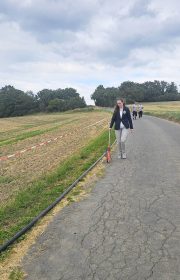 Um die Länge vor Ort zu prüfen, war RID-Rekordrichterin Meike Janz nach Mertloch gekommen. Mit einem Messrad ausgestattet, lief sie die gesamte Murmelbahn ab. Die reine Länge der Bahn von knapp 3 Kilometern war zwar ausreichend für einen neuen Weltrekord, doch jetzt musste die Bahn noch von der Kugel durchlaufen werden.