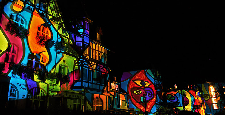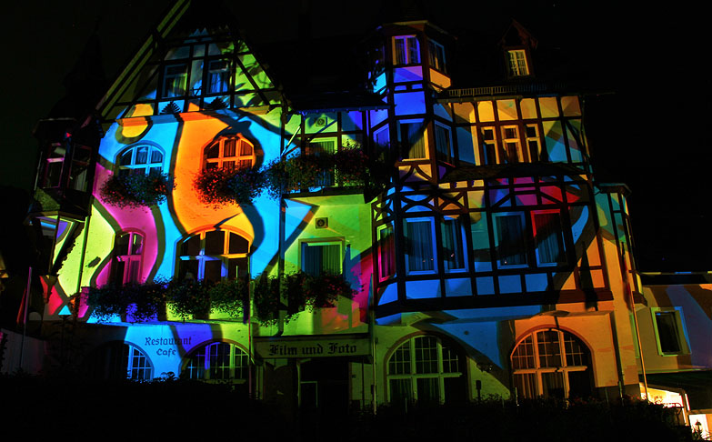 Der Kurort Bad Bertrich, idyllisch zwischen Mosel und Eifel gelegen, wirkte am 9. und 10. Oktober 2015 auf Initiative des Gewerbevereins wie verzaubert: Auf einer ununterbrochenen Länge von 1,502 km strahlten umgebaute Diaprojektoren quietschbunte Illustrationen an die Hauswände, die so zu einem riesigen erlebbaren Gesamtkunstwerk verschmolzen.