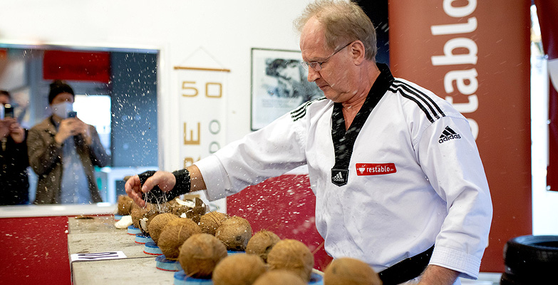 Dies ist keine große Überraschung, schließlich hat der 61-jährige auch international nur wenig Konkurrenz bei Bruchtest-Weltrekorden. In seiner Kampfsportkarriere hat der mehrfache Weltrekordhalter schon alles erreicht. Egal ob weltweite Wettkämpfe oder Auftritte in namhaften TV-Shows: Für den Anfang November 2020 aus Altersgründen offiziell aus dem Arbeitsleben Ausgeschiedenen keine Seltenheit. Doch »Hammerhand« will es noch einmal wissen und hat die eigene Bestleistung von 2017 im Visier. Damals hatte er in der Europa-Passage in Hamburg (D) 123 Kokosnüsse zerschmettert. Um diese Weltrekordmarke zu verbessern, müssen also mindestens 124 Kokosnüsse regelgerecht zerschlagen werden. Um dieses Vorhaben persönlich zu überprüfen, war RID-Rekordrichter Olaf Kuchenbecker in die von Kahrimanovic geleitete Kampfsportschule »Mo San e.V.« nach Hamburg-Schnelsen gekommen. Sofort überreichen will Kuchenbecker dem Kampfsportler seine Rekordurkunde im Erfolgsfall – dieser dürfte auch für den erfahrenen »Kokosnuss-Knacker« keine leichte Aufgabe sein.