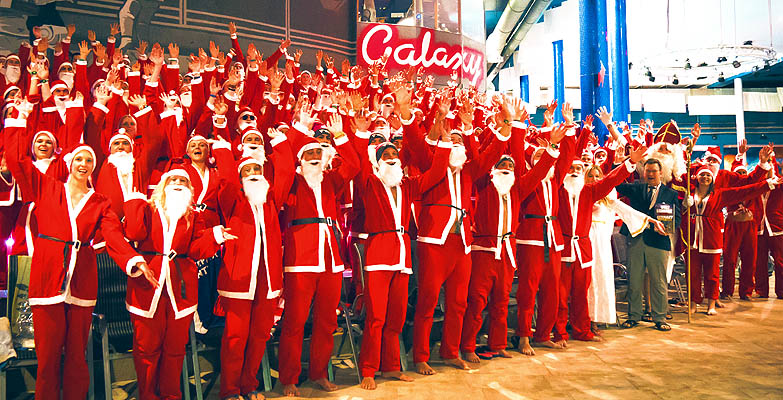 Für kurzentschlossene Teilnehmer am Rekordversuch hatte die Therme Erding sogar Kostüme bereitgestellt, bestehend aus roter Hose, Mantel (sogar ein Gürtel war enthalten), Mütze und – ein falscher Bart. Durchgeführt wurde der Rekordversuch auf »Magic Eye«, der «längsten Röhren-Wasserrutsche der Welt«. Pünktlich um 17:45 Uhr gab es das Startsignal, und 155 regelgerecht gekleidete Nikoläuse und Nikoläusinnen nahmen an der damit erfolgreichen Aktion teil, so dass Rekordrichter Olaf Kuchenbecker den neuen Weltrekord mit der Übergabe der Rekordurkunde noch in Erding bestätigen konnte.