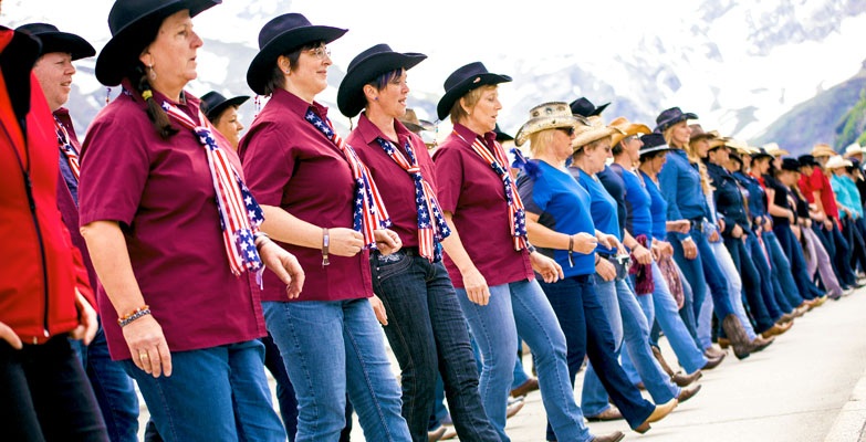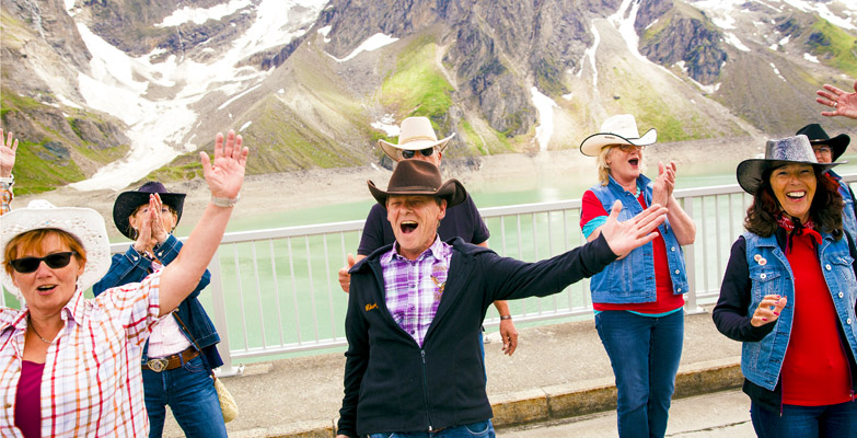 Am 17. Juni 2017 ertanzten sich 669 schwindelfreie Line-Dancer auf der Krone der Mooserboden-Staumauer an den Kaprun Hochgebirgsstauseen (A) den »höchstgelegenen Country-&-Western-Line-Dance« – auf einer Höhe von 2.036 m ü. NN., oder »Seehöhe«, wie man in Österreich sagt.