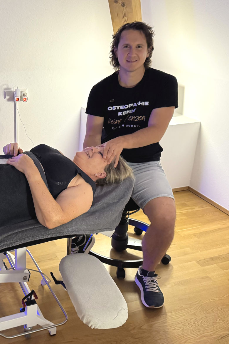 Ein Osteopath oder eine Osteopathin behandelt ausschließlich mit den Händen und löst Blockaden im Körper durch Grifftechniken auf bestimmte Muskeln, Nerven und Gefäße. Dies steigere die Leistungsfähigkeit und fördere langfristig die Gesundheit.
