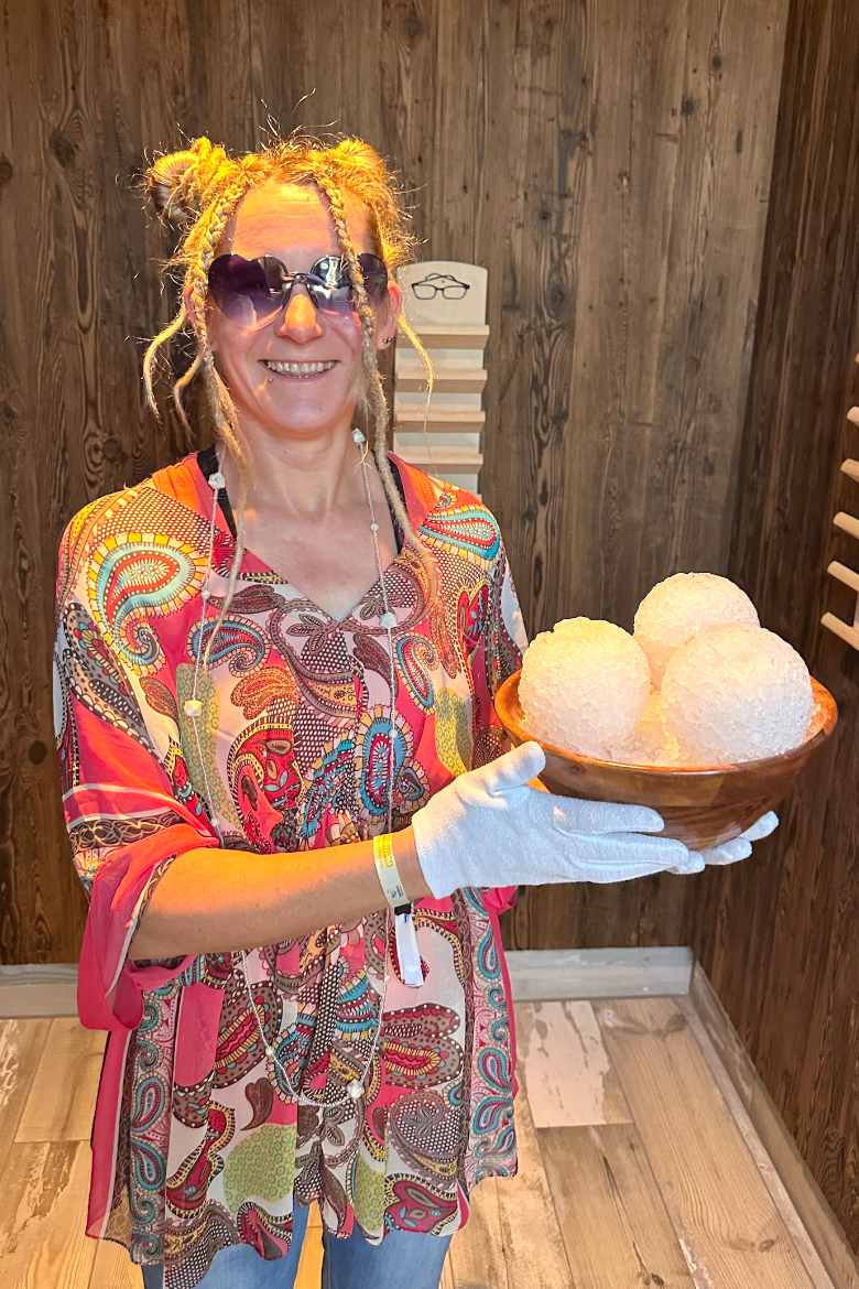 Dabei wurde die Technik der neuen Sauna bei den verschiedenen Themen- und Show-Aufgüssen bestens ausgenutzt. Die Sauna-Profis hatten sich kreative Konzepte überlegt und traten teilweise im Kostüm in Aktion. So gab es zum Thema »Love & Peace« einen Aufguss im Hippie-Kostüm mit Blumenduft. Oder beim Aufguss »Der Sturm« eine Gewittershow der Lichtanlage samt Tanzeinlage mit leuchtendem Dreizack.