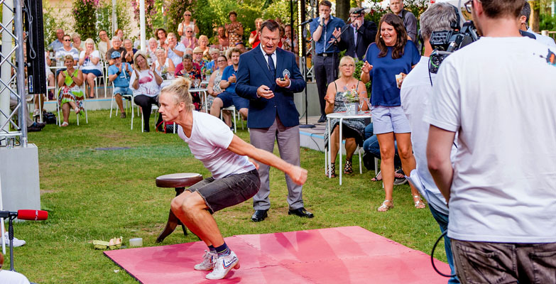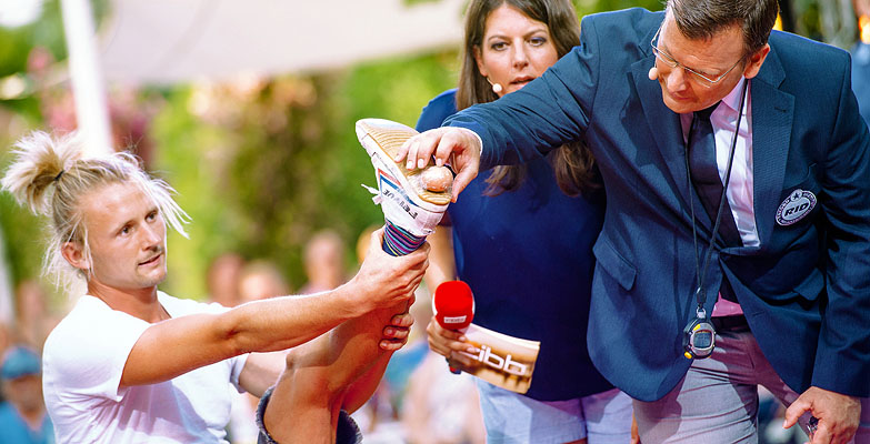 Und tatsächlich wurde Lukas Vernaldi dann im Sommer 2017 in eine ARD-TV-Show eingeladen, und stellte dort seinen ersten Weltrekord auf. Doch richtig zufrieden war er mit seiner Leistung von 8 Saltos nicht, hatte stets das Gefühl, diese Leistung sei noch nicht das »Ende der Fahnenstange«. So kam Lukas der Aufruf vom rbb-Fernsehen gerade Recht, die Bewerberinnen und Bewerber aus Berlin und Brandenburg suchten, in der Sendung zibb Sommergarten im Juli und August 2018 neue Rekorde aufzustellen. Die Gelegenheit und der richtige Rahmen für Lukas, seinen Weltrekord noch einmal zu verbessern.