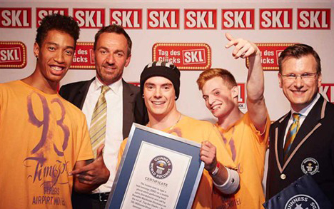 Breakdancer Benedikt „BBoy Bench“ Mordstein (D) wollte sich den Erstrekord für die schnellste SMS beim Head-Spin sichern, wofür er maximal 75 Sekunden lang tippen durfte.