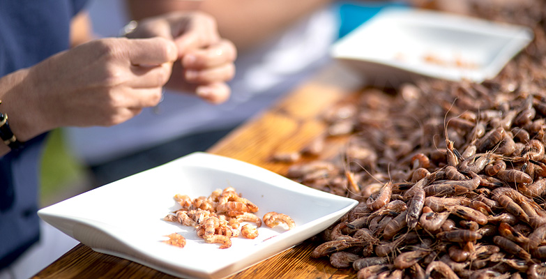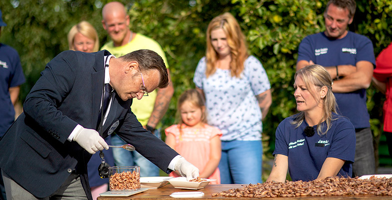 Der Tisch steht im Garten, die am Morgen frisch gefangenen Krabben liegen darauf, bereit für die Duellantinnen. Dann startet Olaf Kuchenbecker den Rekordversuch ein. Unter den gespannten Blicken der Familie beginnen die Rekordjägerinnen mit dem Pulen. Eine Krabbe nach der anderen landet auf dem Teller, Schalen purzeln auf den Rasen. »Man macht den Schwanz ab, dann muss man ein bisschen drücken und dann muss man ziehen«, hatte die Enkelin von Marita Peters vorher genau erklärt. Wie angewiesen machten die Schwägerinnen die Krabben »nackig«. Bis zur letzten Sekunde landeten entsprechend ausgepackte Schalentiere auf dem Teller.