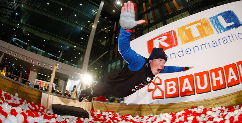 Wie gewohnt stellte sich Ausdauersportler Joey Kelly auch beim Spendenmarathon 2018 einer sportlichen Herausforderung für den guten Zweck – und konnte im »Urban Run« mit der Unterstützung von 20 Firmenteams den achten Weltrekord im Rahmen des RTL-Charity-Events holen. Dazu bewältigten die Rekordjäger für die Dauer von 24 Stunden laufend Hindernisse und erzielten den Erstrekord der Kategorie »weiteste Team-Staffelstrecke im Extrem-Hindernislauf (24 Stunden, mixed)«.