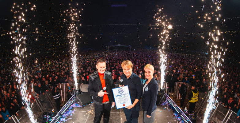 »Party-Stimmung und Weltrekord!«, so fasste die erfahrene Rekordrichterin die Auszeichnung mit der Weltrekordurkunde vor fast 45.000 zuschauenden Personen zusammen. So viele Personen kamen bisher noch nie zusammen, um die 1980er-Jahre wieder aufleben zu lassen und mit Live-Acts gebührend zu feiern.Fotos: Jonas Diener
