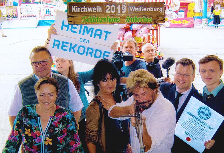 Eine so schöne und darüber hinaus rekordverdächtig lang ausgeführte Tradition ist genau das Richtige für eine neue RID-Weltrekordkategorie. Zusammen mit einem Team der Fernsehsendung »Heimat der Rekorde« (BR, D) war RID-Rekordrichter Olaf Kuchenbecker am 25. August 2019 überraschend nach Weißenburg gekommen, um das 46. Selfie dort persönlich mitzuerleben und das Ehepaar Dinnebier mit einer RID-Rekordurkunde zu zertifizieren.