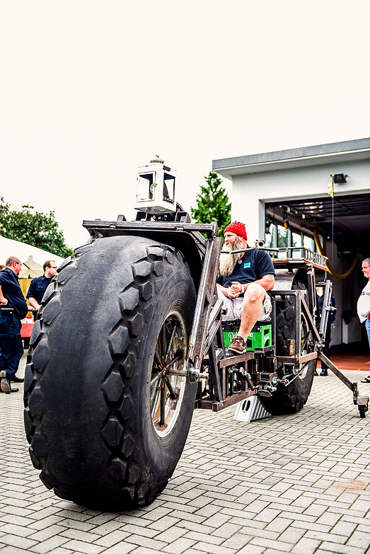 Das aus Stahl vom Schrottplatz zusammengeschweißte Gefährt hat nicht nur ein gewaltiges Gewicht, sondern auch ebensolche Ausmaße. Allein Räder nebst Reifen, die ursprünglich von einem Güllewagen stammen, haben einen Durchmesser von 1,53 Metern. Dennoch lasse es sich nach Auskunft seines Erbauers »richtig gut fahren« und sei »für seine Größe sogar erstaunlich wendig«.Die Idee zu diesem Ungetüm auf Rädern kam Lastwagenfahrer Dose übrigens auf dem Heavy-Metal-Festival in Wacken. Als dann ein Kollege zweifelte, dass ein solches Gefährt tatsächlich machbar sei, war dies die Initialzündung für Tüftler Dose, tatsächlich loszulegen.