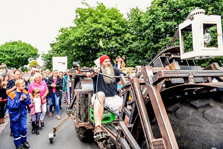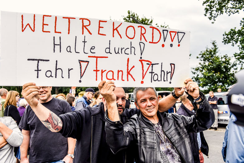 Lassen sich 1.080 kg aus geschweißtem Stahl wirklich mit reiner Muskelkraft bewegen? Wird die Konstruktion bei der Fahrt halten? Unter großem Jubel zahlreicher Schaulustiger absolvierte Erbauer Frank Dose am 3. September 2016 die erfolgreiche Rekordfahrt. Denn erst nach dem Zurücklegen einer aus eigenem Antrieb gefahrenen 100-Meter-Strecke ist der Weltrekord gültig, und wurde direkt im Anschluss mit einer Rekordurkunde offiziell als »schwerstes Fahrrad der Welt« zertifiziert.