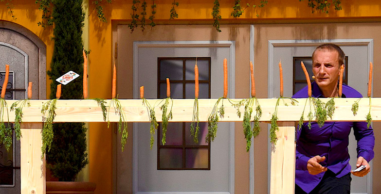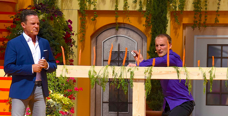 Als bei der Präsentation der aufgereihten rohen Möhren demonstriert wird, dass nur handelsübliche Spielkarten aus Papier zum Einsatz kommen, die nicht in James-Bond-Manier mit Stahl versehen sind, wird die Schwierigkeit des Unterfangens klar. Entscheidend seien Wurftechnik und Fluggeschwindigkeit der Karten, erläutert der sichtlich angespannte Zivojinovic dem Publikum. Um die Möhren zu zerschneiden seien 160 Stundenkilometer nötig, erzeugt einzig aus einer Bewegung des Handgelenks. Ohne tägliches Training funktioniere das nicht.
