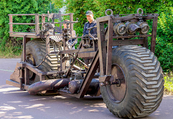 Schon seit drei Jahren bastelt Beutler an seinem XXL-Projekt und fügte es Stück für Stück zusammen. Für den Bau verwendete Fahrrad-Fan Beutler, der sich schon in der »Tretharley«-Szene einen Namen gemacht hat, »Rohstoffe« von Schrott- & Recyclingplätzen. Darunter Motorradketten, Fahrrad-Ritzel, Signalleuchten von der Bahn oder Getriebe aus alten Autos. Beutler verbaute alles in seinem Rekordobjekt. Zudem fertigte er einige Teile selbst an, oder ließ sie von Freunden fräsen. Der gelernte Tischler verwendete mehrere Ketten, um sein überdimensionales Gefährt fahrtüchtig zu bekommen und brachte zur Stabilisierung einen lenkbaren Beiwagen an. Ein Zweitakt-Verbrennungsmotor dient zur Stromgewinnung und zum Laden der Batterie für das Bordnetz, das Hupe und Beleuchtung betreibt.