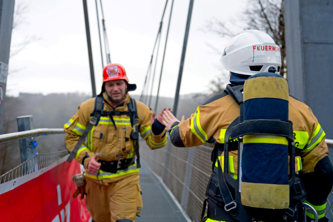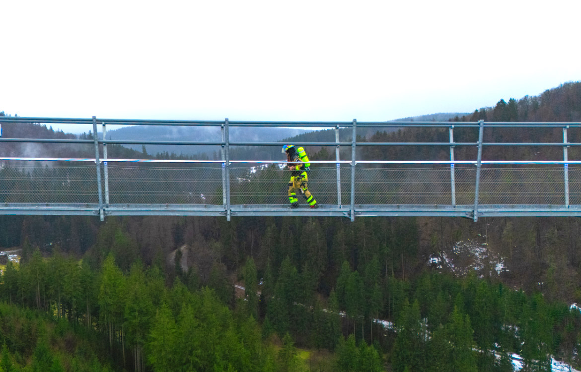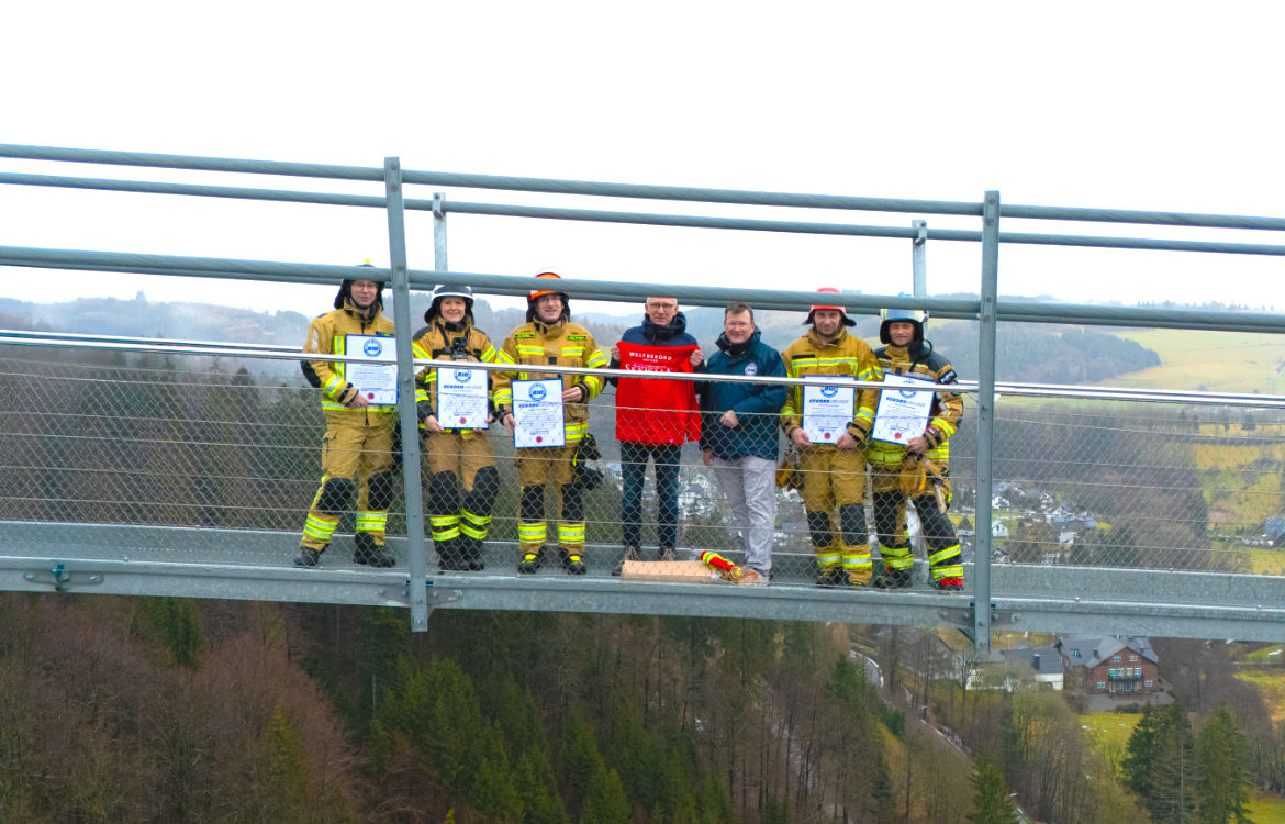 Am 30. Januar 2025 unternahmen die fünf Feuerwehrleute Ingo Kolhoff, Matthias Barkling, Marco Rocholl, Kevin Kruk sowie Sabrina Icks dort ihren Weltrekordversuch der Kategorie »schnellste 5x2km-Staffel in persönlicher Feuerwehrschutzausrüstung auf einer Hängebrücke«.Durch das Durchhängen der Brückenkonstruktion mussten die fünf Rekordler allerdings eine Länge von 700 Metern pro Brückenüberquerung zurücklegen, Steigungen inklusive. Dennoch bewältigte das Team um Ingo Kolhoff die 10-km-Strecke auf dem »Skywalk« in der beeindruckenden Zeit von 1 Stunde 1 Minute 34 Sekunden und unterbot damit die Mindestanforderung für die neue Rekordkategorie deutlich.