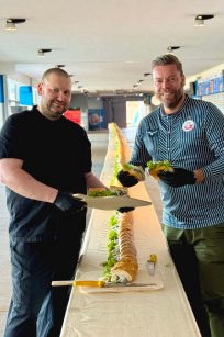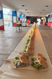 Nach Beginn der Vorbereitungen folgten anderthalb Stunden konzentriertes Produzieren und Belegen. Anschließend zurechtrücken und Verbindungen sowie Kanten überprüfen. Pünktlich um 10 Uhr war der Feinschliff erledigt und das Fischbrötchen wurde RID-Rekordrichterin Laura Koblischek präsentiert.