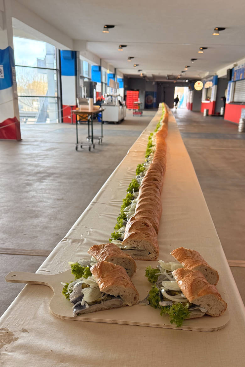 Wo sonst Fußballspiele stattfinden, gab es an diesem Tag ein ganz anderes Spektakel. Denn einmal im Jahr veranstaltet der FC Hansa Rostock zahlreiche Spendenaktionen, hauptsächlich für die mecklenburgischen Tafeln. 2026 wurde im Rahmen der Aktion ein ganz besonderer Weltrekordversuch organisiert. Bereits früh morgens begann das Team von Gastronom Christoph Wulff daher mit den Vorbereitungen für ein überlanges Fischbrötchen.