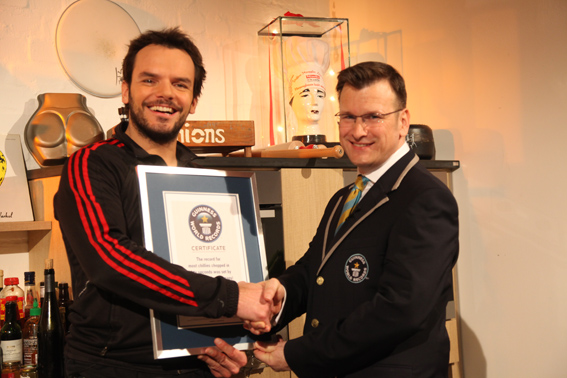 TV-Koch Steffen Henssler hat Englands Starkoch Jamie Oliver erfolgreich herausgefordert und ist nun offizieller Weltrekordhalter. Jamie Oliver hatte erst im Januar 2013 einen Rekord aufgestellt, bei dem er nur mit einem Messer ausgerüstet mit 10 die meisten Chili-Schoten in 30 Sekunden klein hackte. Diesen Rekord verbessert Steffen Henssler am 19. März 2013 in Hamburg, auf 11 klein gehackte Chili-Schoten .