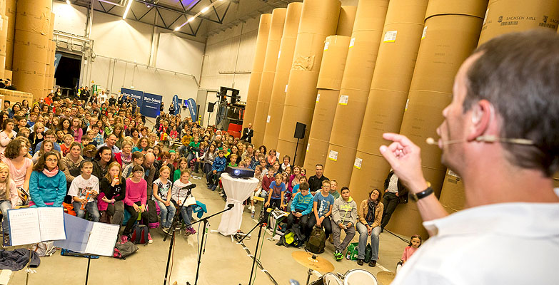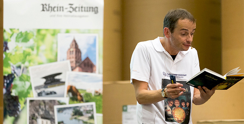 Dabei machte er unter anderem Halt in Gladbeck, wo zuhörende Fünftklässler sich auch gleich am Weltrekord im Stille-Post spielen versuchten, und mit 62 Mitspielern erfolgreich waren. Ein paar Tage später, am 19. September 2015 machte die rekordverdächtige Lesereise dann Station in Koblenz, im Papierlager der Druckerei der Rhein-Zeitung, das mit Bühne und davor platzierten Stühlen zum Auftrittsort umfunktioniert worden war.