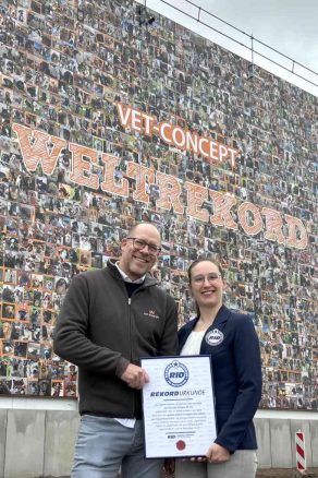 Gleichzeitig war das ehrgeizige Projekt beim Rekord-Institut für Deutschland (RID) als Weltrekordversuch angemeldet worden. Die offiziell »größte digital erzeugte Foto-Collage aus Haustierporträts« war das monatelang vorbereitete Ziel. Mit diesem Motiv wollte Vet-Concept die einzigartige Beziehung zwischen Mensch und Tier in den Mittelpunkt stellen. Und natürlich auch die Haustiere der Kundschaft, deren Konterfeis sie nun auf ihrem Firmensitz präsentiert.