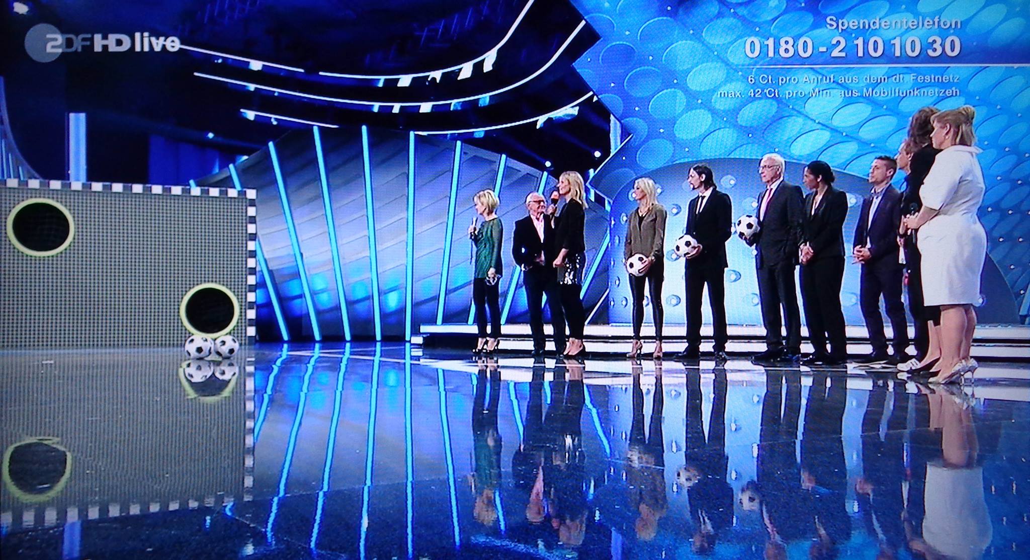 Mit einem „Drei-Punkte-Schuss“ katapultierte sie Ball und Pömps nahezu gleichzeitig und zielgerichtet ins obere Eck. Insgesamt 96.000 EUR brachten die Fussballkünste der Stars und Vereine an der ZDF-Torwand.