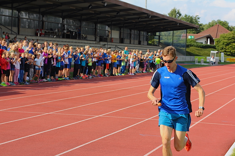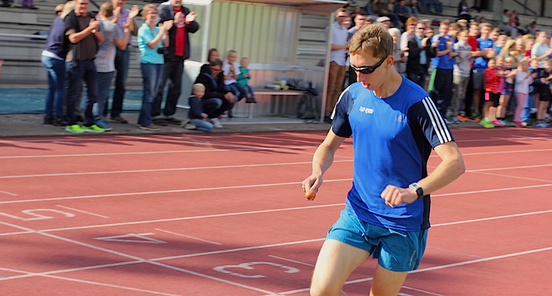 Leichtathlet und Student Stefan Ritte, der erste Rekordbrecher des Tages, hat hier seine sportliche Heimat. Er war angetreten, um den von ihm selbst gehaltenen Weltrekord für die »schnellste Meile im Eierlauf« zu verbessern. Die Rekordmarke lag bisher bei 5 Minuten 27 Sekunden, die Stefan fast exakt zwei Jahre zuvor bei einem Sportfest am Bocholter Aasee aufgestellt hatte.