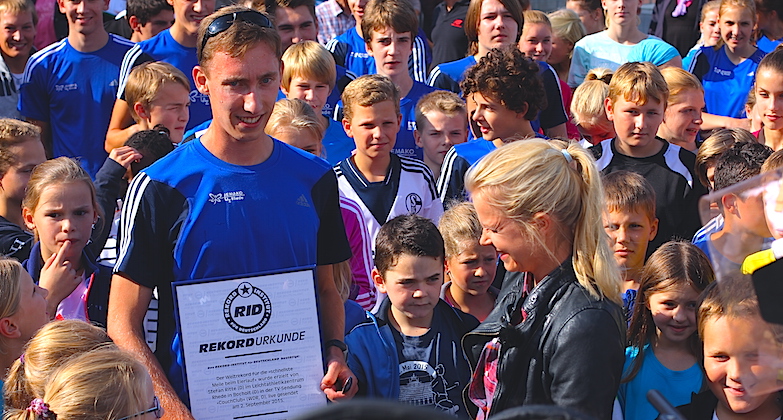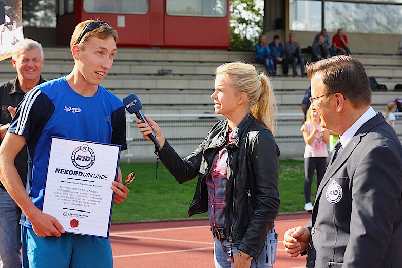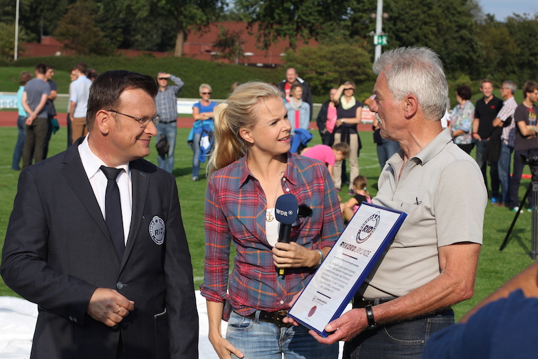 Am 2. September 2015 ging es sportlich zu bei den beiden Weltrekorden, die sich die neue TV-Sendung »CouchClub« (WDR, D) aufzustellen vorgenommen hatte. Dazu war das Team mit Moderatorin Sandra Quellmann und RID-Rekordrichter Olaf Kuchenbecker nach Rhede gekommen, in die Nähe von Bocholt. Austragungsort war das Stadion des Leichtathlethikzentrum (LAZ) Rhede.