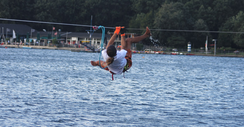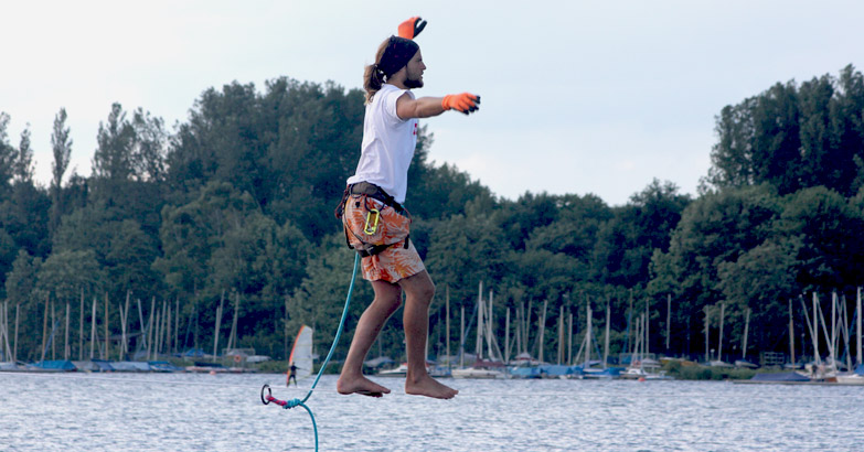450 m lang ist die Line, gespannt vom Südstrand zum Nordufer des Baggersees, der ein beliebtes Naherholungsgebiet ist. Für den neuen Weltrekord der Disziplin »längste Slackline-Strecke über Wasser (Waterline)« muss Alexander die gesamte Strecke in einem Durchgang bewältigen ohne herunterzufallen.