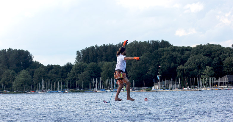 Der Rosenheimer Rekordjäger Alexander Schulz wollte den Weltrekord verbessern, den er selbst im September 2014 aufstellt hatte. Dazu will er übers Wasser gehen, und auf einer sogenannten »Slackline« balancieren. Ein elastisches Band, das zwischen zwei Punkten gespannt wird, und sich als Trendsportart immer größerer Beliebtheit erfreut. Doch anders als beim Segeln, ist starker Wind hierfür eher kontraproduktiv.